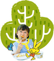 東海学院大学健康福祉学部医療栄養学科の専門的な指導のもと、当園に在籍する栄養士と調理員が、園内で手作りの給食を作っています。子どもたちの成長に必要な栄養バランスを考慮して、毎日こだわった給食を提供いたします。好き嫌いがあるお子様でもなんでも楽しく食べられるようになります。栄養面が心配な保護者様も安心してお任せいただけるよう、細心の注意と工夫を詰め込んだ給食をお作りします。