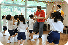 音楽教室と造形教室では、東海学院大学・東海学院大学短期大学部の専門教諭と子どもたちが、さまざまな教育活動を取り入れています。これらの活動を通じて、将来に役立つ運動能力やリズム感、英語のフレーズに親しむ力を遊び感覚で育み、園児たちの成長を支えていきます。満三歳さんから年長さんまで、一人ひとりの発達段階に合わせて無理なく進めていきますので、安心してお任せください。