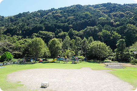 岐阜県下最大級の広い敷地には、木々や草花が広がり、季節ごとの昆虫たちの姿も見られるなど、自然と触れ合える環境が整っています。すべり台やグランドキャッスルのような大型遊具がある運動場もあり、子どもたちが自由に遊べる外遊びも充実しています。