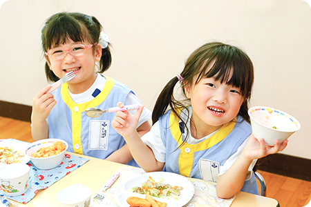 栄養バランスに配慮したうえで、子どもたちが毎日の食事を楽しめるように、素材選びや味付けにも細やかな工夫をしています。「今日はどんなメニューかな?」と、給食の時間を心待ちにする子どもたちの姿が多く見られます。