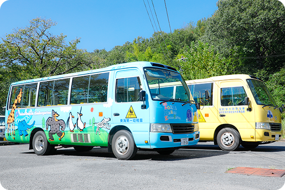 お友だちや教諭とバスに乗って園に向かう時間は、お子様にとってワクワクする特別なひと時。車窓から見える景色も、毎日新しい発見に満ちています。