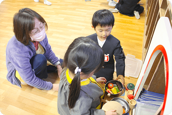 「子育てもお仕事も頑張りたい」そんな働くママ・パパを応援するために、「預かり保育」や「満三歳児保育」などの保育サービスを行っています。平日・長期休みなど、ご家庭のスケジュールに合わせてご利用いただけるよう体制を整えました。お子様はもちろん、ご家庭全体の毎日がより安心して過ごせるように、お気軽にご相談ください。